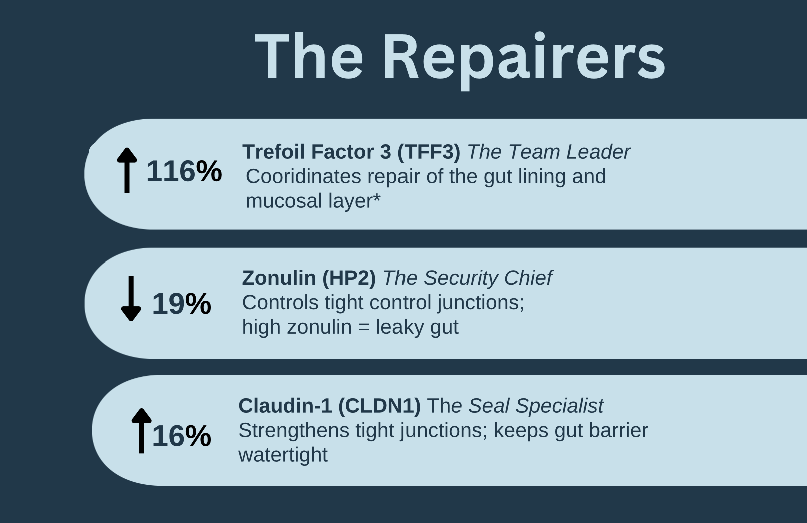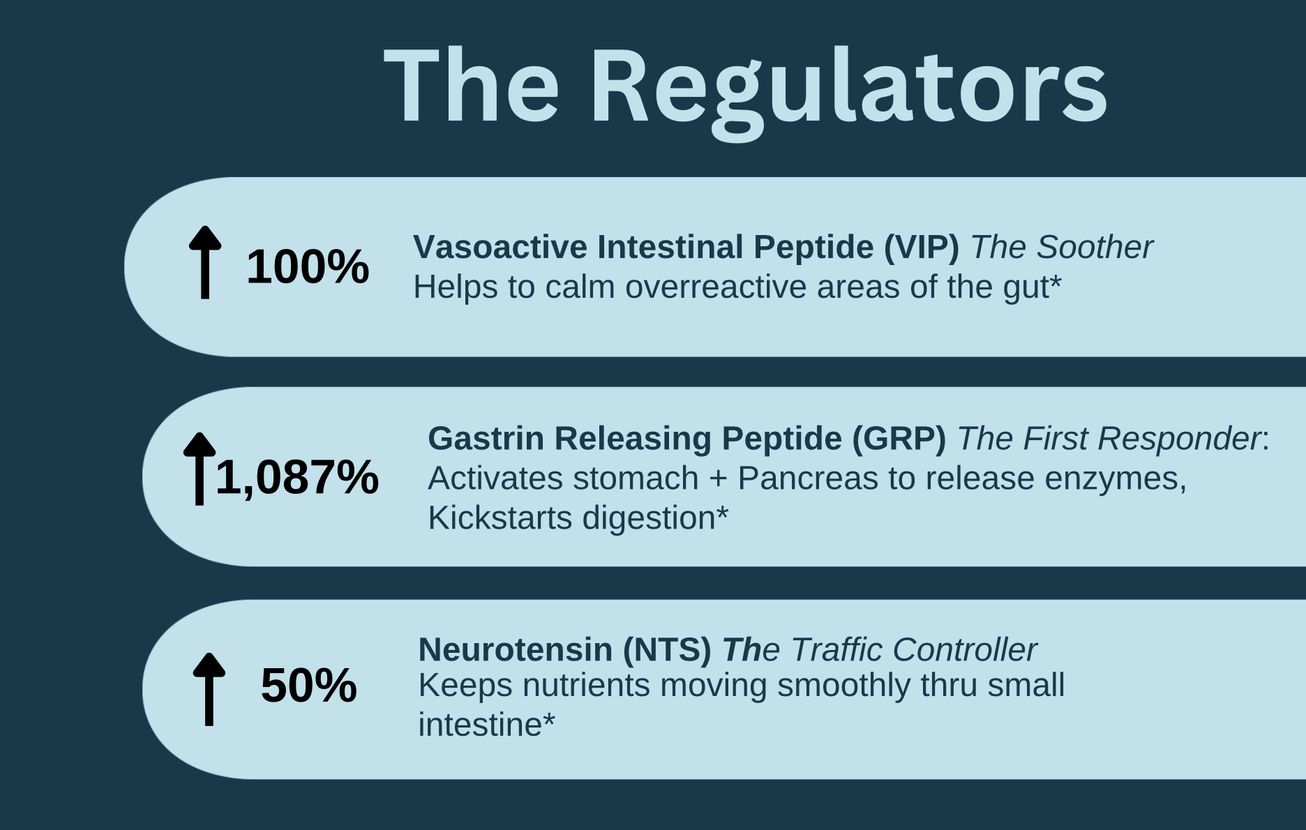 A targeted blend of restorative plant nutrients that help activate peptides to strengthen the gut lining, calm overactive responses, and reinforce barrier integrity.*